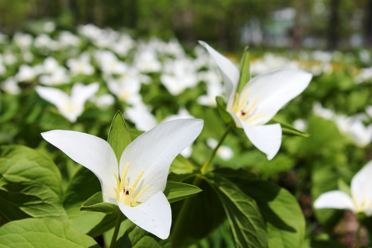 - 花のシーズンを迎えた「六花の森」でオオバナノエンレイソウ(春の妖精)を観賞